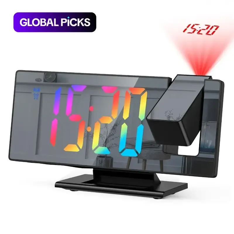 180° Arm Projection Alarm Clock, 1 Count USB Plug-In Digital Alarm Clock, Snooze Table Clock, 12-24-Hour Projector LED Clock, USB Powered Clocks, Home Decor