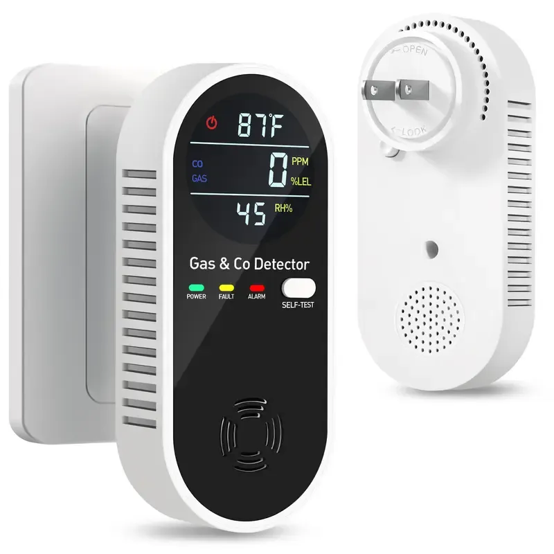 4-in-1 Display Remind,Plug in with Temperature Humidity Sensor Built-in,with DualSensor,Air Safety Remind with Clear Display Sound &Light for Homes,Kitchens,Apartments,RVs