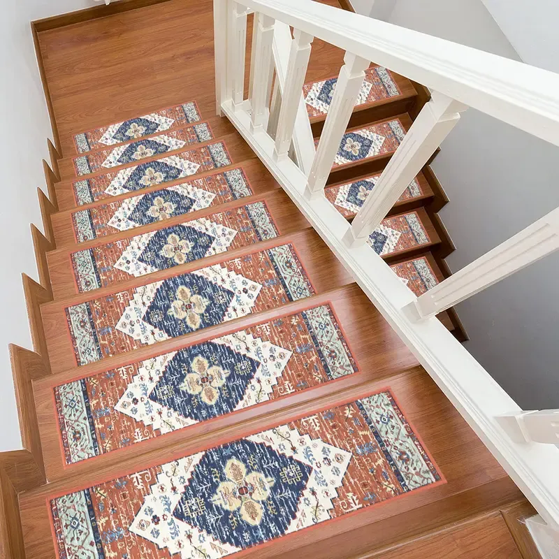 HEBE Non Slip Chenille Stair Runner for Wooden Indoor Reusable Soft Washable Rugs with Anti Slip Adhesive for Pets & Kids Stairway Grip Treads Decorative Mats 2PC