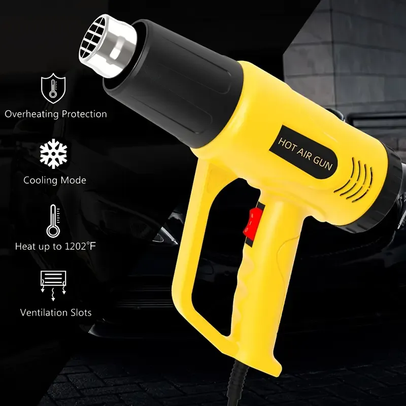 Hot Air Gun 1800W Fast Heating Suitable for Vinyl Wrap, Crafts, Shrink Tubing, Paint, Epoxy Resin, Overload Protection Hot Air Gun Set Nozzle