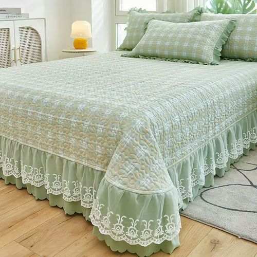 New Style Princess Plaid Bed Skirt Bedding Set, Three-Piece Soft Lace Bed