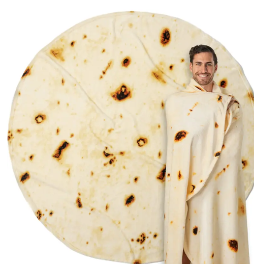 PAVILIA Burrito Tortilla Pizza Blanket, Double Sided Taco Flour Wrap Novelty Throw for Adult Kid Teen, Realistic Food Blanket, Funny Gag Gift for Birthday